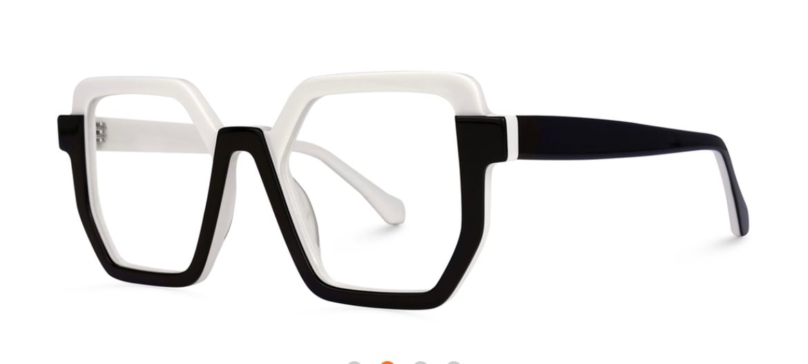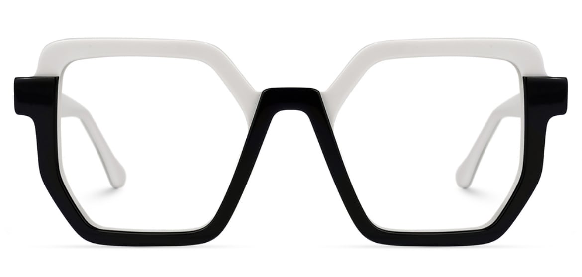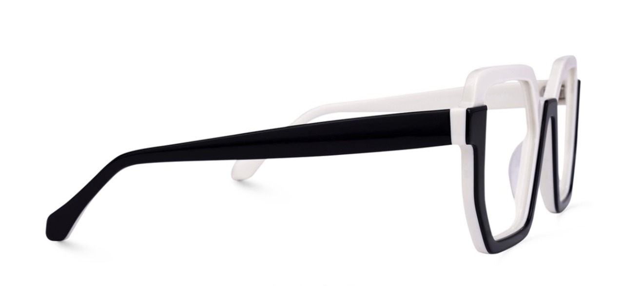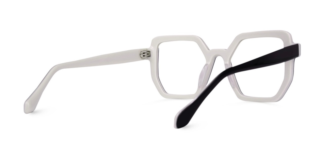 ジオメトリックでモノトーンカラー。 モダンな印象のフレーム。 アセテート素材。